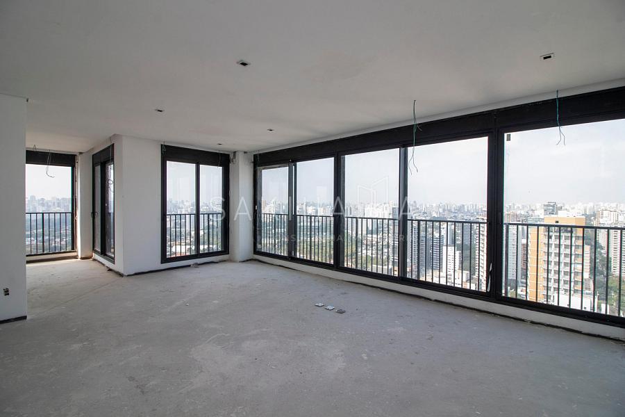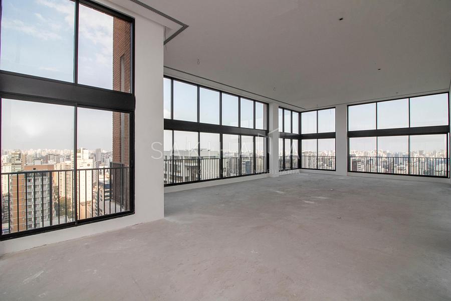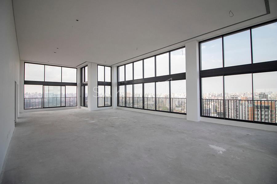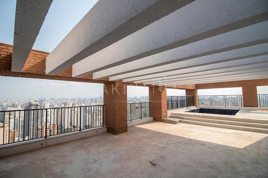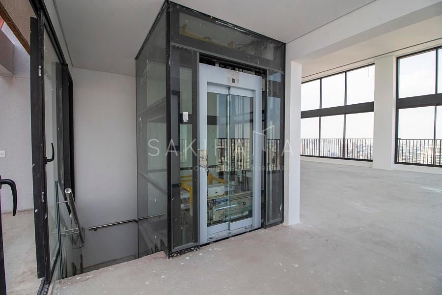 Cobertura duplex de 688 m², 04 suítes, 08 vagas de garagem sendo 01 box, hall privativo com 02 elevadores sociais, elevador privativo, vista livre para o clube Atlético Monte Líbano, contrapiso.