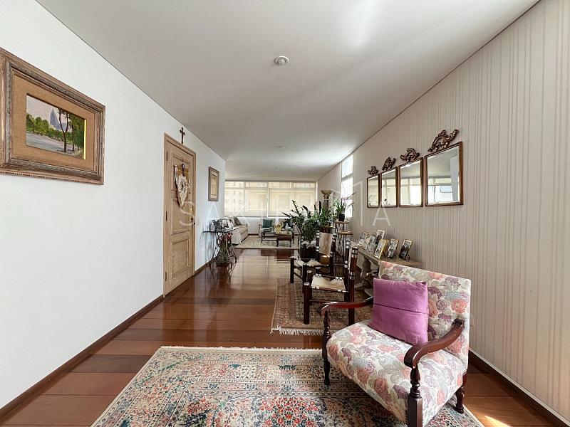 Apartamento de 180 m², 03 dormitórios sendo 01 suíte, 02 vagas de garagem, hall privativo, entrada social e de serviço.