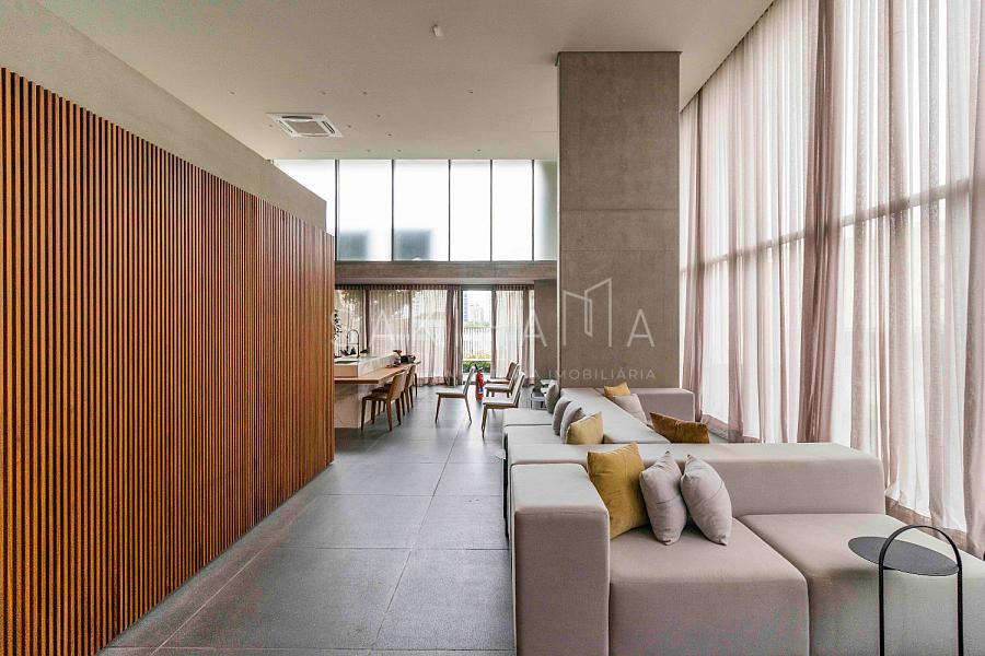 Amplo living com 02 ambientes, terraço integrado com a sala, fechamento em vidro retrátil, som ambiente, sistema de automação: alexa, lavabo.