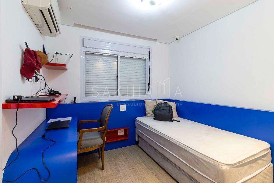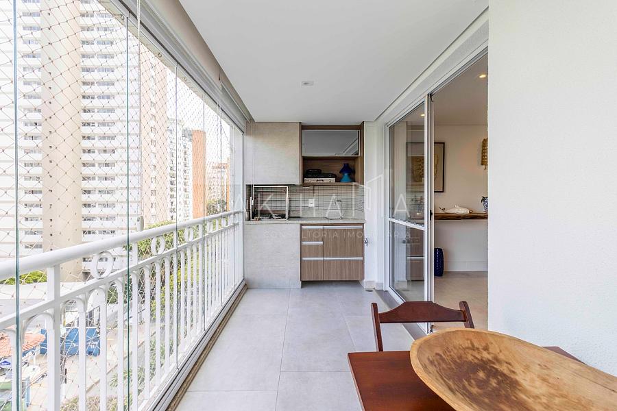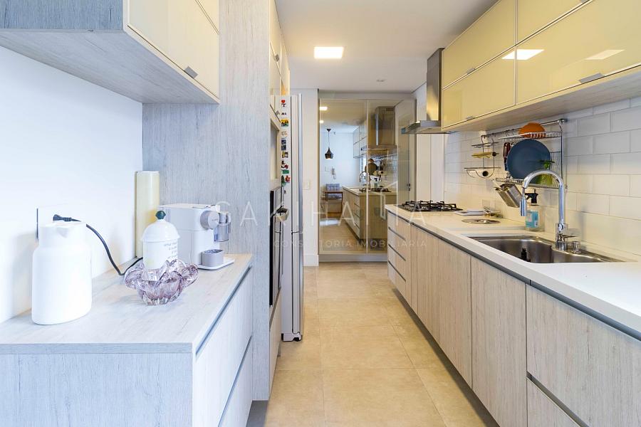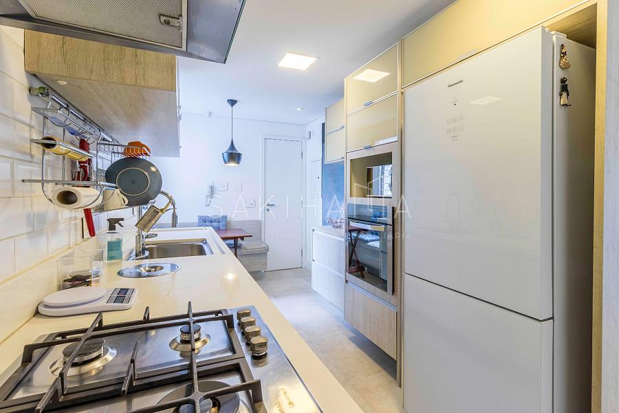 Imóvel em Moema Pássaros, 143 m², 03 amplas suítes, 02 vagas de garagem, hall privativo, entrada social e de serviço, elevador social com controle de acesso, marcenaria de primeira linha em todos os ambientes, piso porcelanato na sala, cozinha e banheiros, piso vinílico nas suítes.