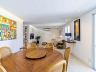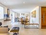 Living para 02 ambientes: estar/TV e jantar com mesa de 06 lugares, área de escritório.