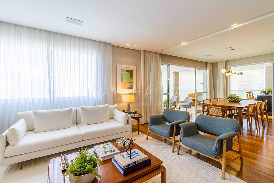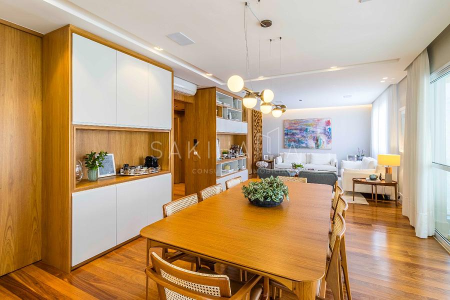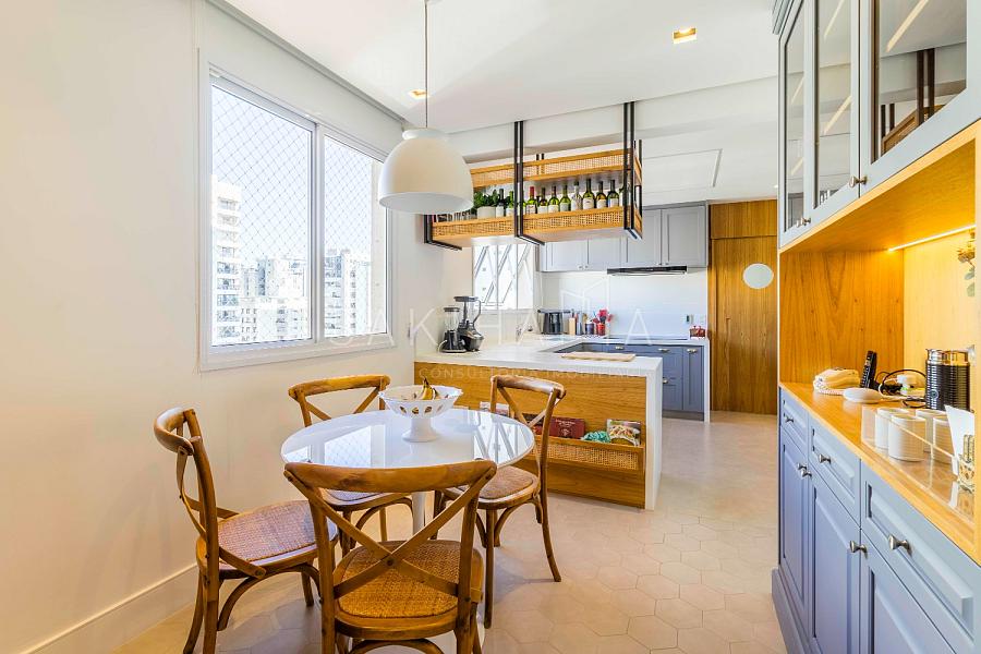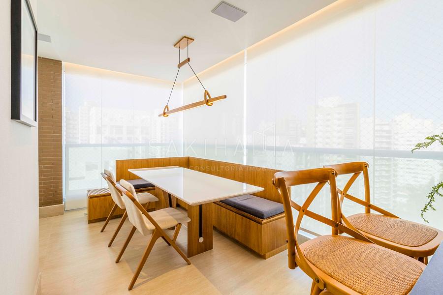 Imóvel de 230 m², recém reformado com 03 suítes, 04 vagas de garagem demarcadas,depósito privativo, andar alto, hall privativo, entrada social e de serviço, marcenaria de primeira linha e projeto de iluminação em todos os ambientes, piso de madeira na sala e dormitórios, piso em porcelanato na cozinha, varanda e banheiros.