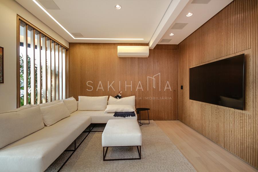 Espaço gourmet com churrasqueira com sistema de exaustão, deck elevado, piscina com vista panorâmica, sistema e aquecimento solar, living para 03 ambientes, projetor e telão de 98” e conectado à automação, banheiro completo para apoio da área social e piscina, 03 suíte, paisagismo com sistema de irrigação automático, tela mosquiteiro nas janelas, cortinas elétricas na área social.