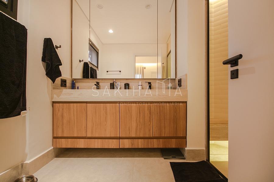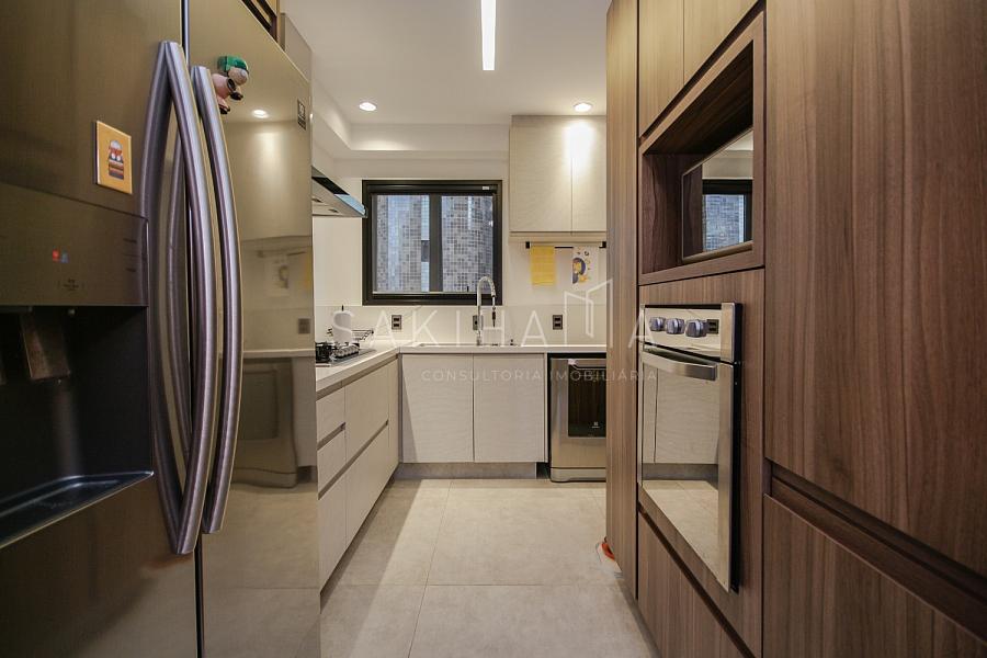 Área social espaçoso para 02 ambientes integrado com a varanda, lavabo, 02 suítes sendo a principal com varanda, banho duplo e walk in closet com marcenaria Ornare, cozinha com marcenaria planejada e todos os eletrodomésticos, área de serviço bem iluminada e ventilada com banheiro auxiliar.